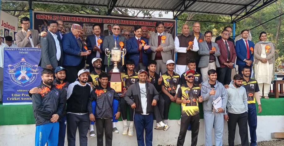 पुलिस लाइन क्रिकेट ग्राउंड, उरई में खेले गए छठे ऑल इंडिया माननीय मुख्य न्यायाधीश श्री जगदीश भल्ला मेमोरियल क्रिकेट टूर्नामेंट–2025 का फाइनल मुकाबला रोमांच से भरपूर रहा। दर्शकों से खचाखच भरे मैदान में डीसीए फिरोजाबाद ने डीसीए मुरादाबाद को 3 विकेट से हराकर खिताब अपने नाम किया। मुकाबला अंतिम ओवर तक खिंचा, जिससे दर्शकों की सांसें थमी रहीं।