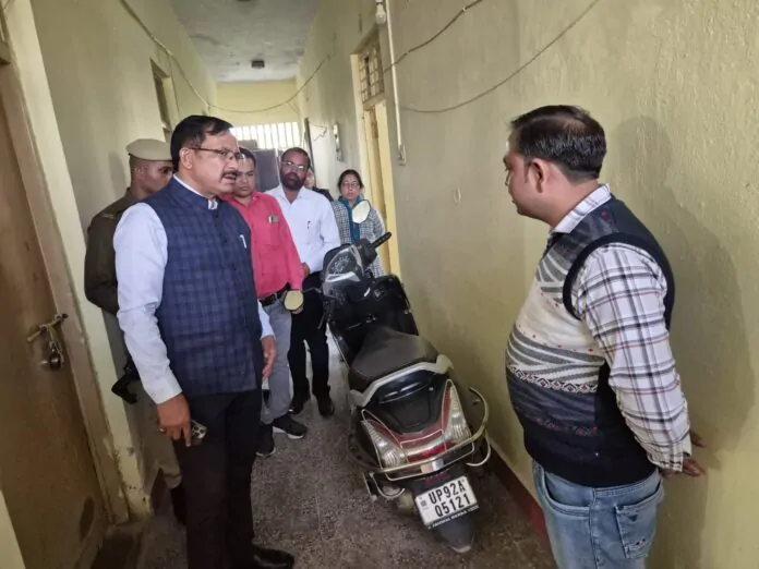 जालौन के जिलाधिकारी राजेश कुमार पाण्डेय ने सोमवार को जिला विद्यालय निरीक्षक कार्यालय का औचक निरीक्षण किया। निरीक्षण के दौरान वरिष्ठ सहायक अमित कुमार द्विवेदी एवं वाहन चालक ब्रजेश कुमार अनुपस्थित मिले, जिस पर जिलाधिकारी ने दोनों कर्मचारियों का एक दिन का वेतन रोकने के निर्देश दिए।